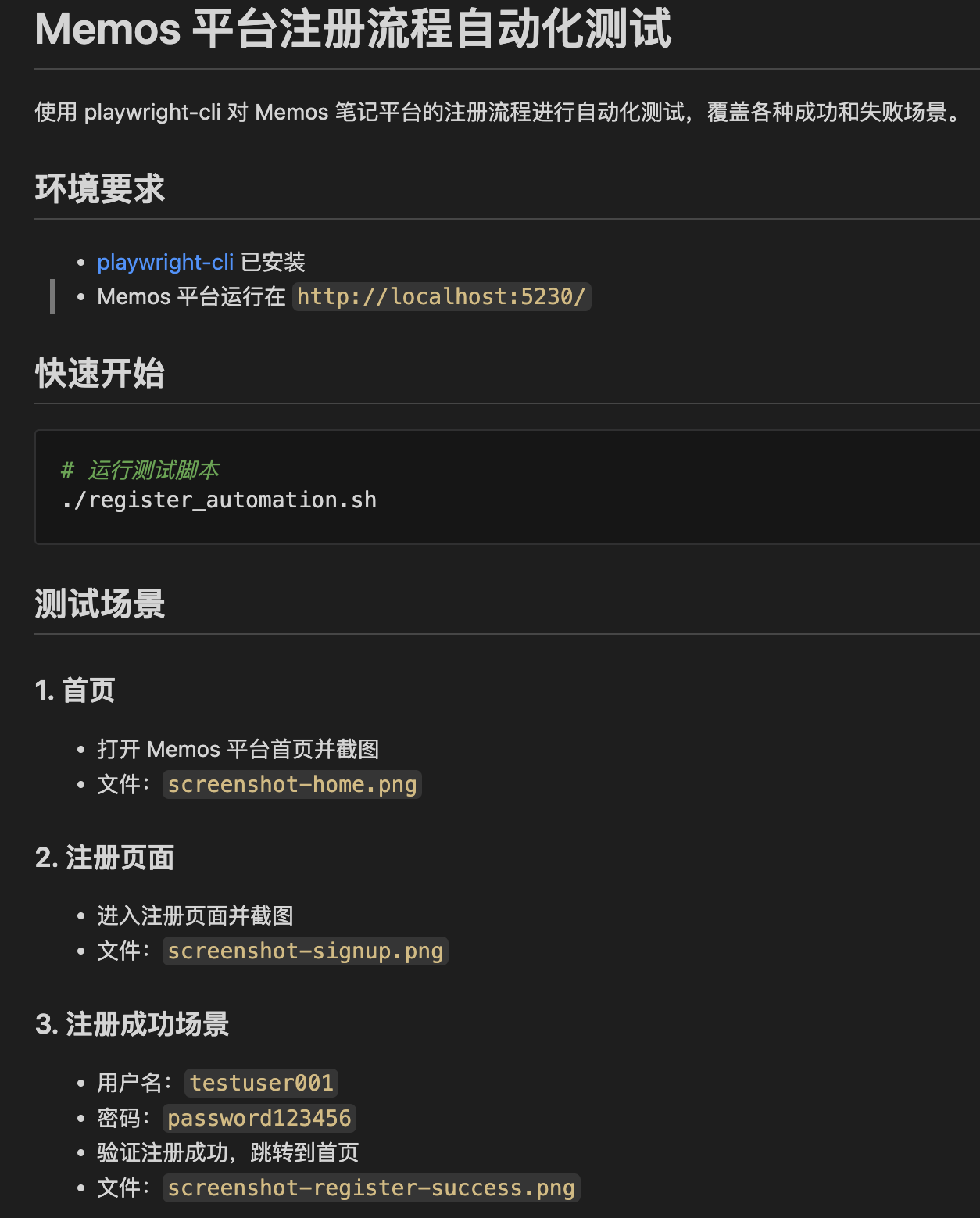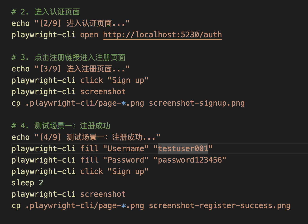 playwright cli的命令是可以重放的,所以我让ai直接把用到的命令都放到1个shell脚本里。这样下一次再进行测试的时候直接执行shell脚本就可以了,高效且准确,还能省token,获得稳定的结果。